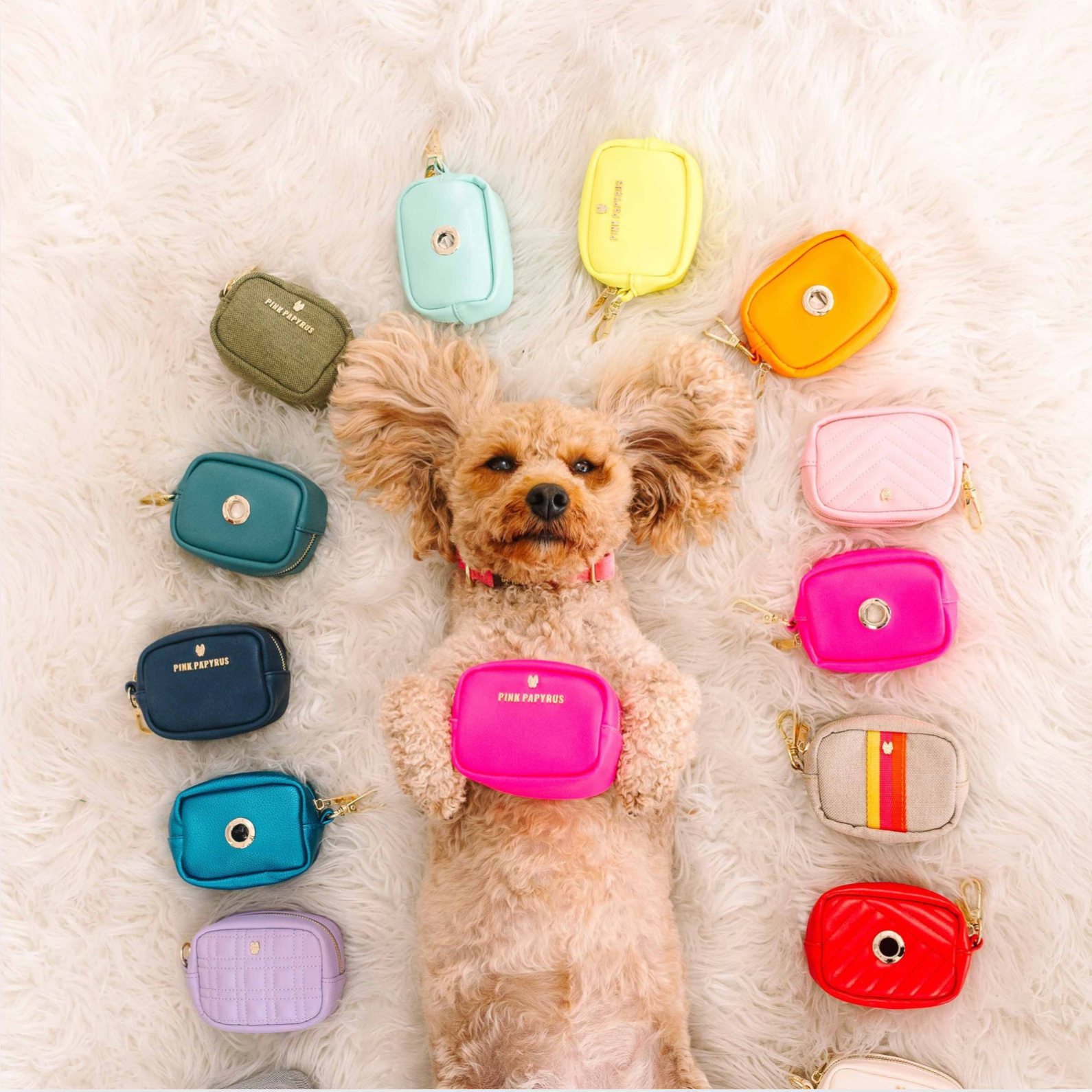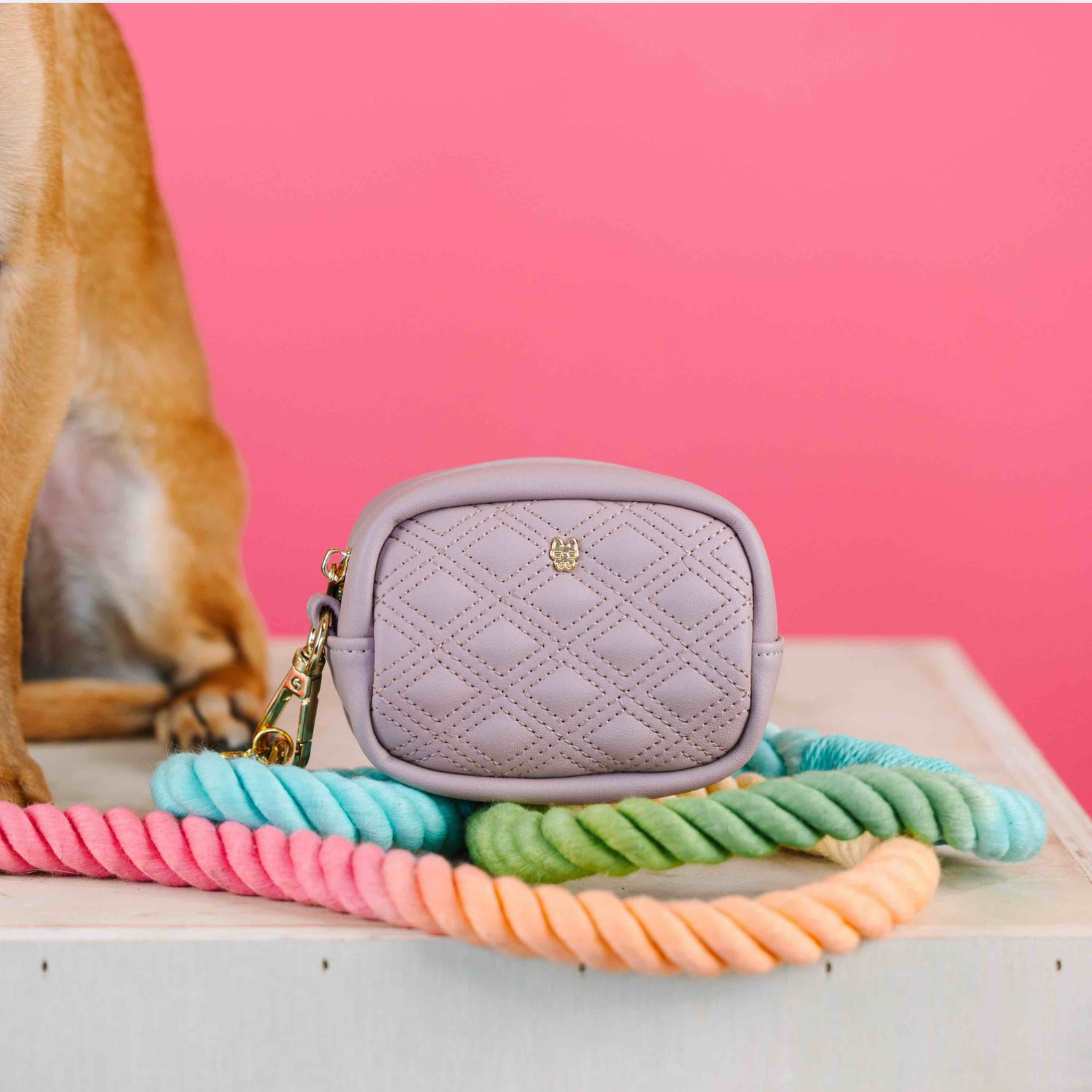 Inside the shimmer is pure function: room for your waste bag roll plus on-the-go extras—keys, treats, tissues, even a credit card in the built-in slot. Lightweight, durable, and easy to clip to your leash, belt bag, or keyring, Hudson keeps you hands free and polished.