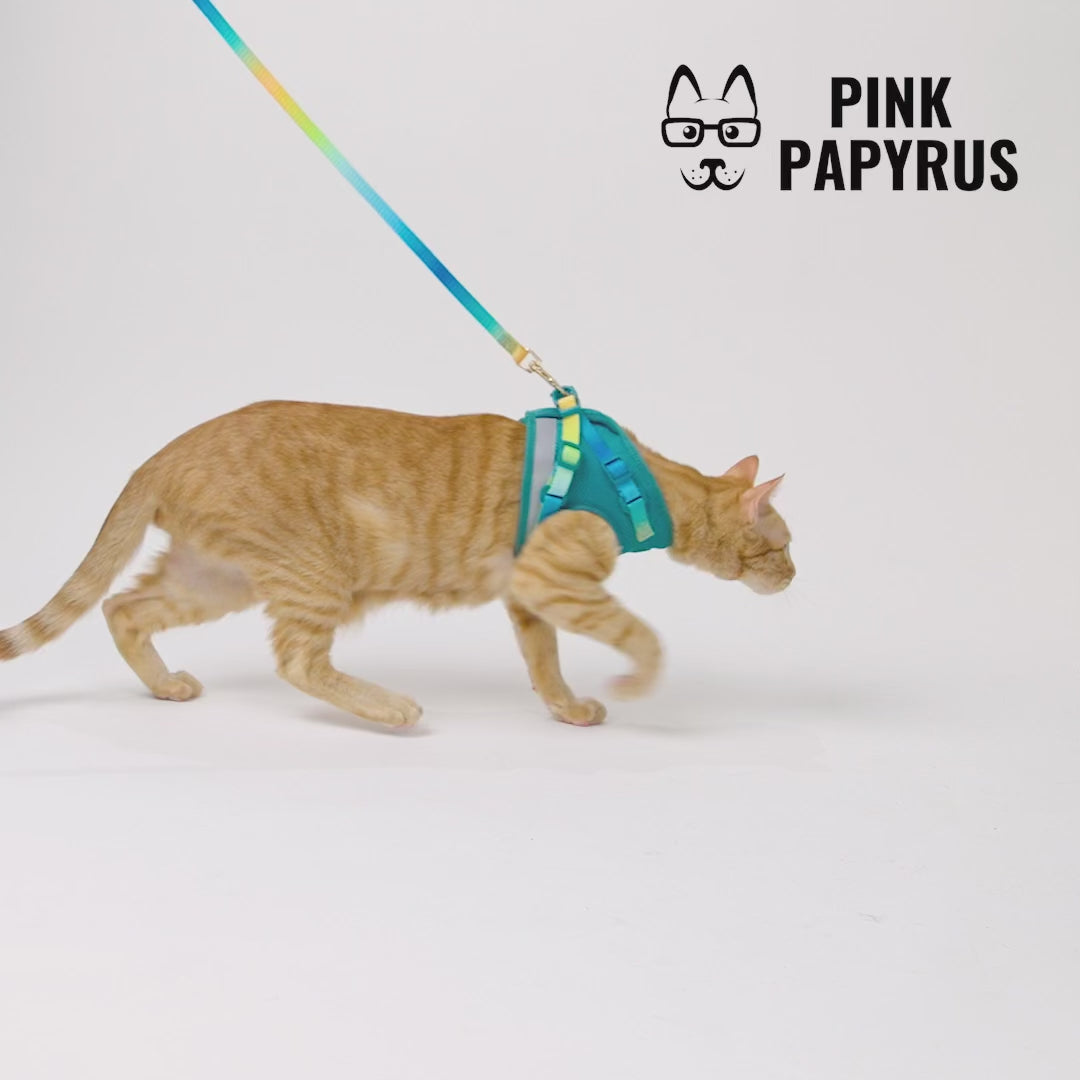 For the cat who was born to stand out. The Joey Cat Harness & Leash Set in luxe teal is as confident as it is comfortable. Crafted from breathable fabric with a reflective strip for late-night lounging—or exploring—it adjusts four ways for the perfect fit and features a discreet AirTag pocket for a little extra peace of mind.